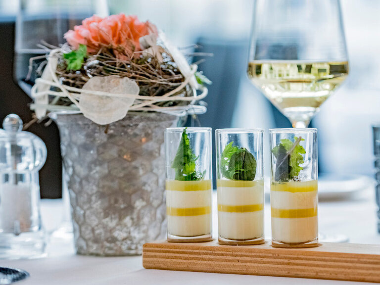 Our chefs are experts and perfectionists. Both our changing lunch menu and our seasonal dinner menu satisfy the most discerning palates. Our modern, light creations combine the uncompromising quality and freshness of regional and international products. Our excellently trained kitchen team and our professional service staff make sure that your meal is just perfect.